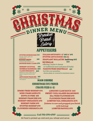Breakin Breads Holiday Menu